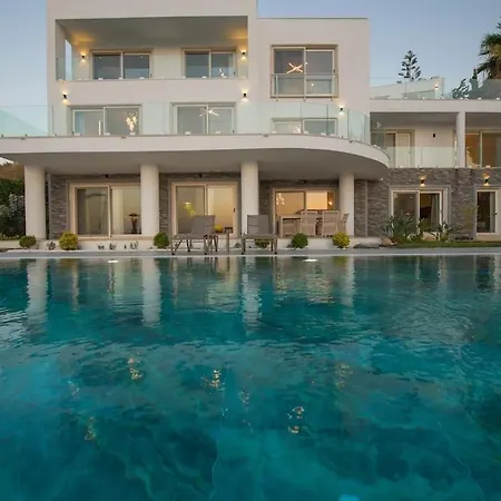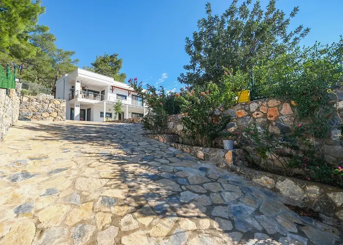 The villa has a terrace with sea view. A swimming pool is available at the resort.